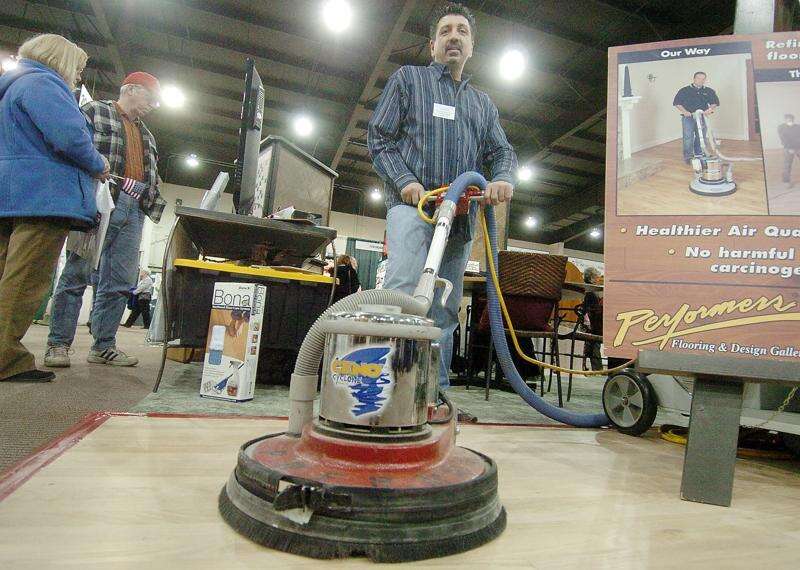 John Psyhos of Performers Flooring and Design Gallery of Bloomingdale demonstrates floor sanding during The Old House New House Home Show at the Mega Center at Pheasant Run Resort. Bob Chwedyk | Staff Photographer