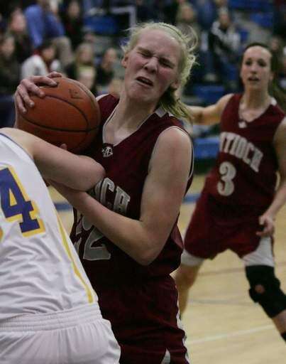 Antioch forward Lauren Grant battles Johnsburg guard Melissa Dixon for a loose ball.
