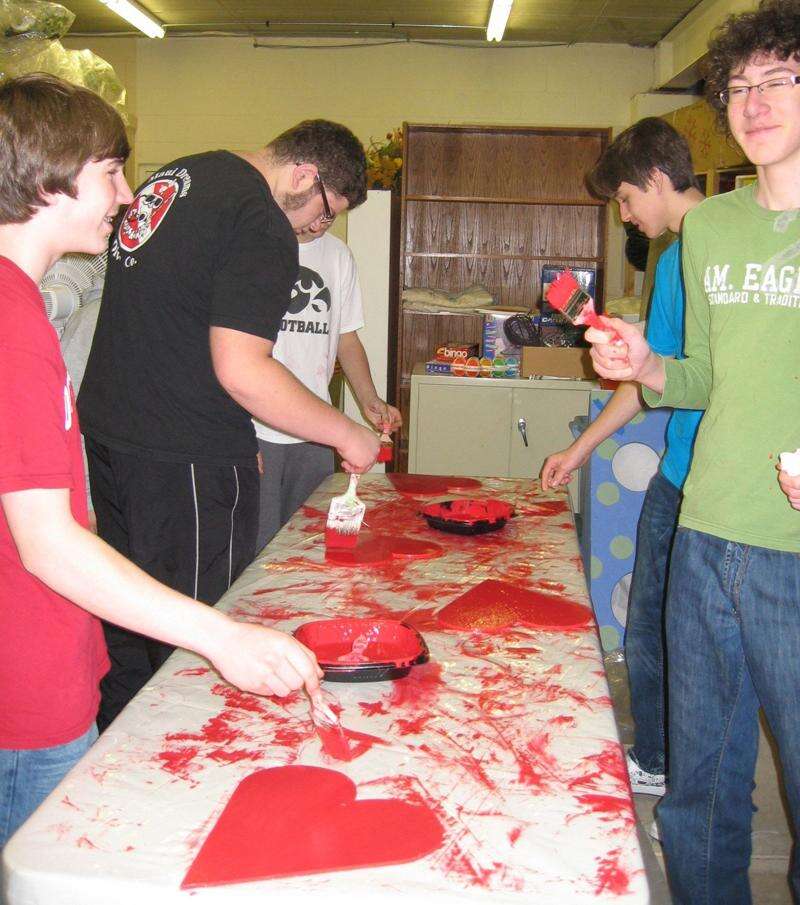 Materials were donated by the Menards store in Long Grove. Troop volunteer Jim DeWald cut the hearts.