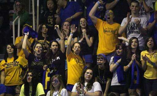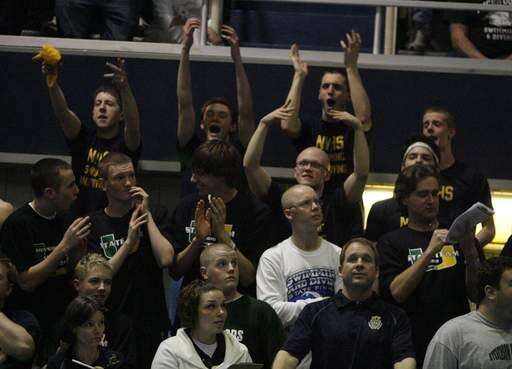 Fans cheer as Naperville Central's Jeff Depew took second place in the 200-yard individual medley at the IHSA swimming championships at Evanston on Saturday February 27.