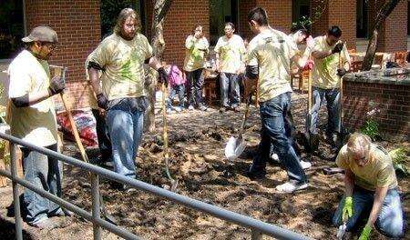 The small courtyard that is surrounded by the science laboratories is now filled with daffodil bulbs and tulips after students and faculty spent hours in its soil.