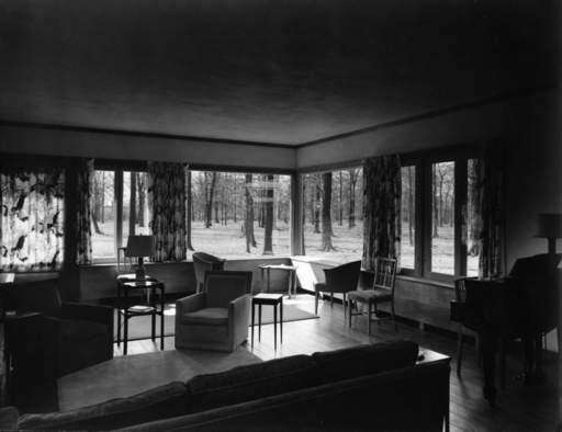 Walls of windows highlight the interior of the Glen A. Lloyd House in Mettawa. Built in 1936, the design is one of the early commissions of master architect Nat Owings. Courtesy Gerald Young, Skidmore, Owings & Merrill LLP