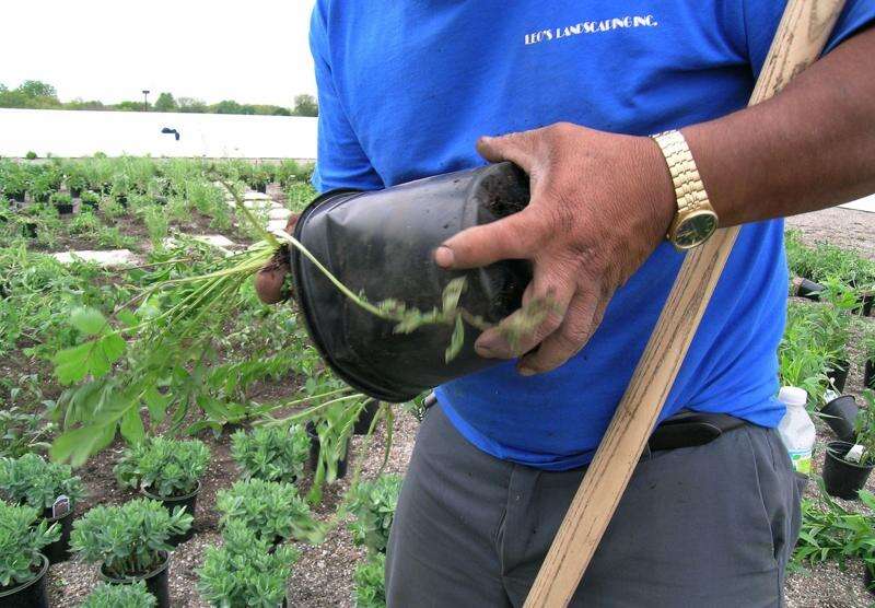 A crew of four was back Tuesday morning at the new Lake County permit facility in Libertyville, finishing the task of filling 8,000 square feet with flowers, grasses and ground cover.