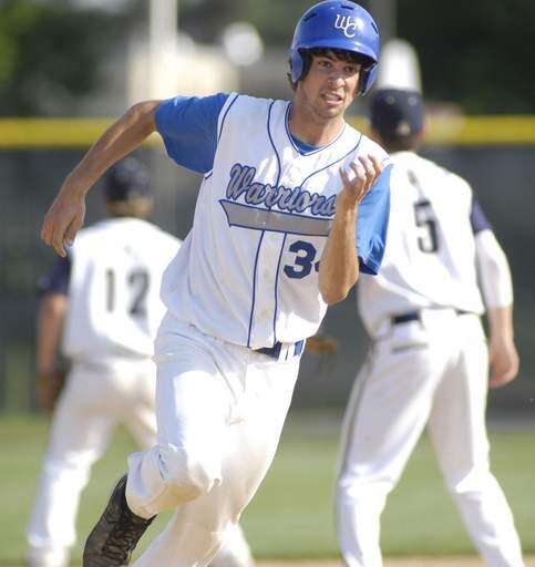 Westminster Christian's Jordan Kalous rounds third base in the third inning to moments later score the first run of the game vs Marquette in super-sectional on Tuesday, June 1.