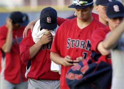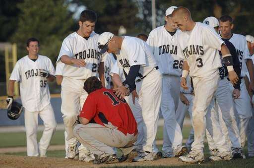 With two outs and the bases loaded in a 9-9 game, Sutherland let rarely-used reserve Danny Leisten hit against Storm reliever Drew Buddle. Leisten, who hadn't batted in a varsity game since the Trojans' season opener at Ottawa on March 20, did what he had to do by putting the ball in play.
