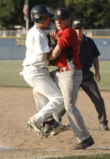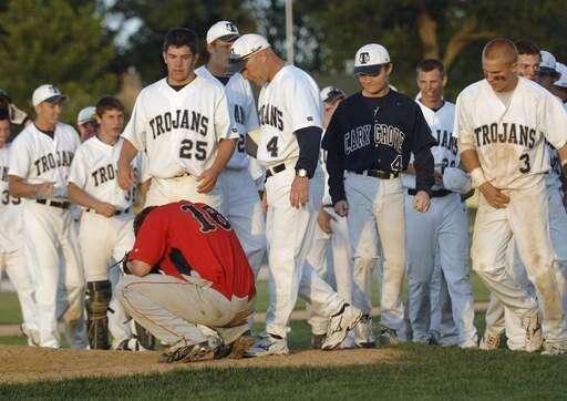 South Elgin coach Jim Kating described the decisive play thusly: "We jammed (Leisten), he hit it, it hit the dirt, it short hopped, it had a crazy spin, he knocked it down, (went) for it, bang-bang play at first, ballgame.