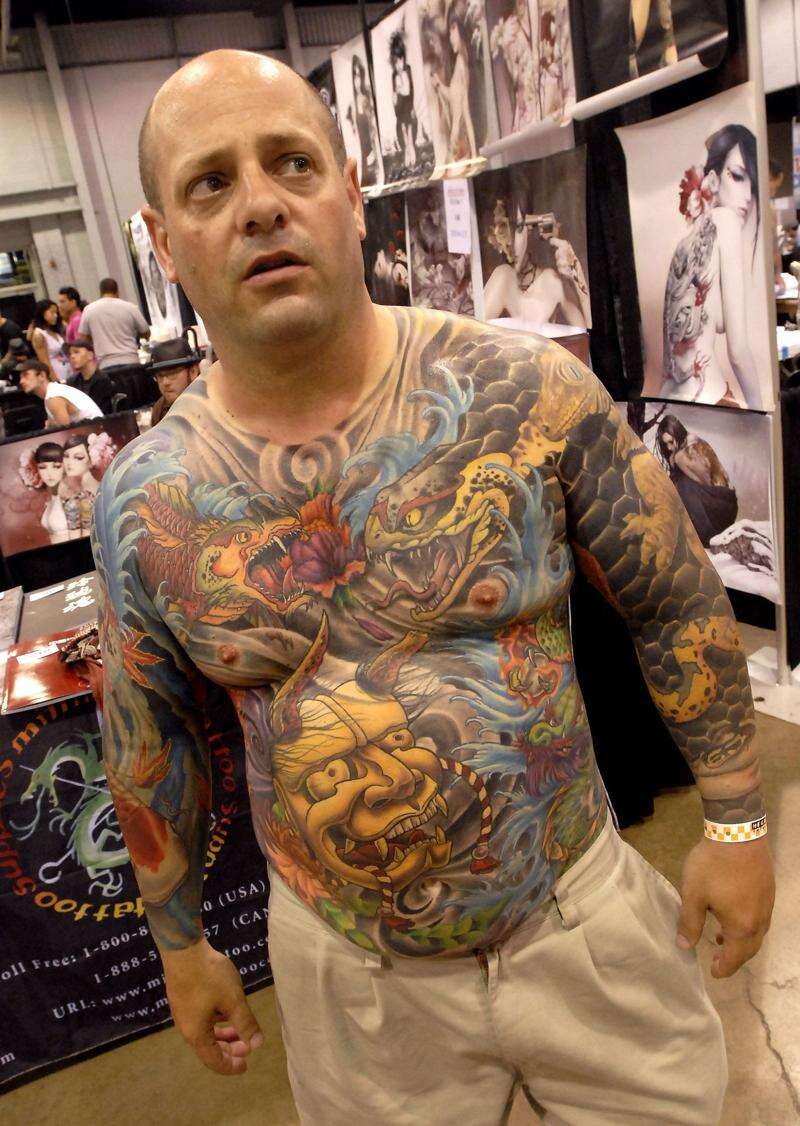 One of the lead contenders for best overall tattoo is Joe Capone, an Oklahoma resident who's a regular on the tattoo convention circuit. He has a "suit," meaning every inch of his arms, legs and torso is covered in tattoos.