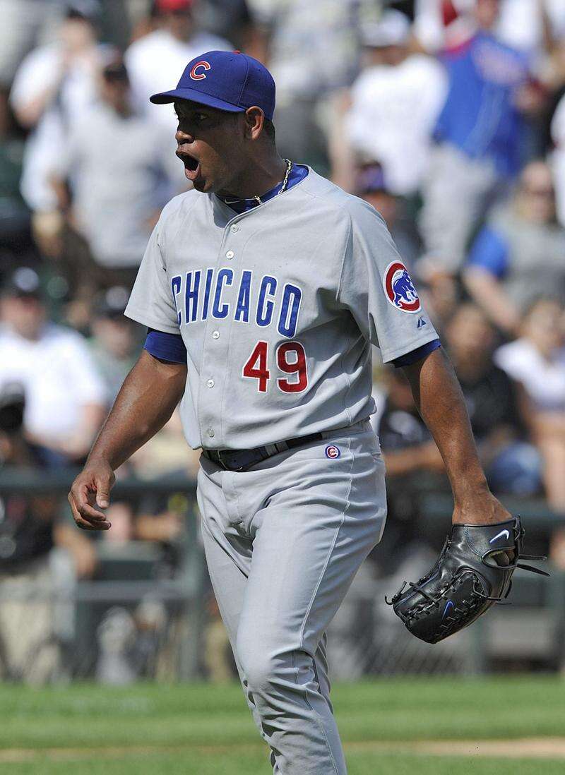 Cubs closer Carlos Marmol gives a shout out Sunday after striking out Alex Rios to end the game - and a 3-run White Sox uprising in the ninth inning. Associated Press