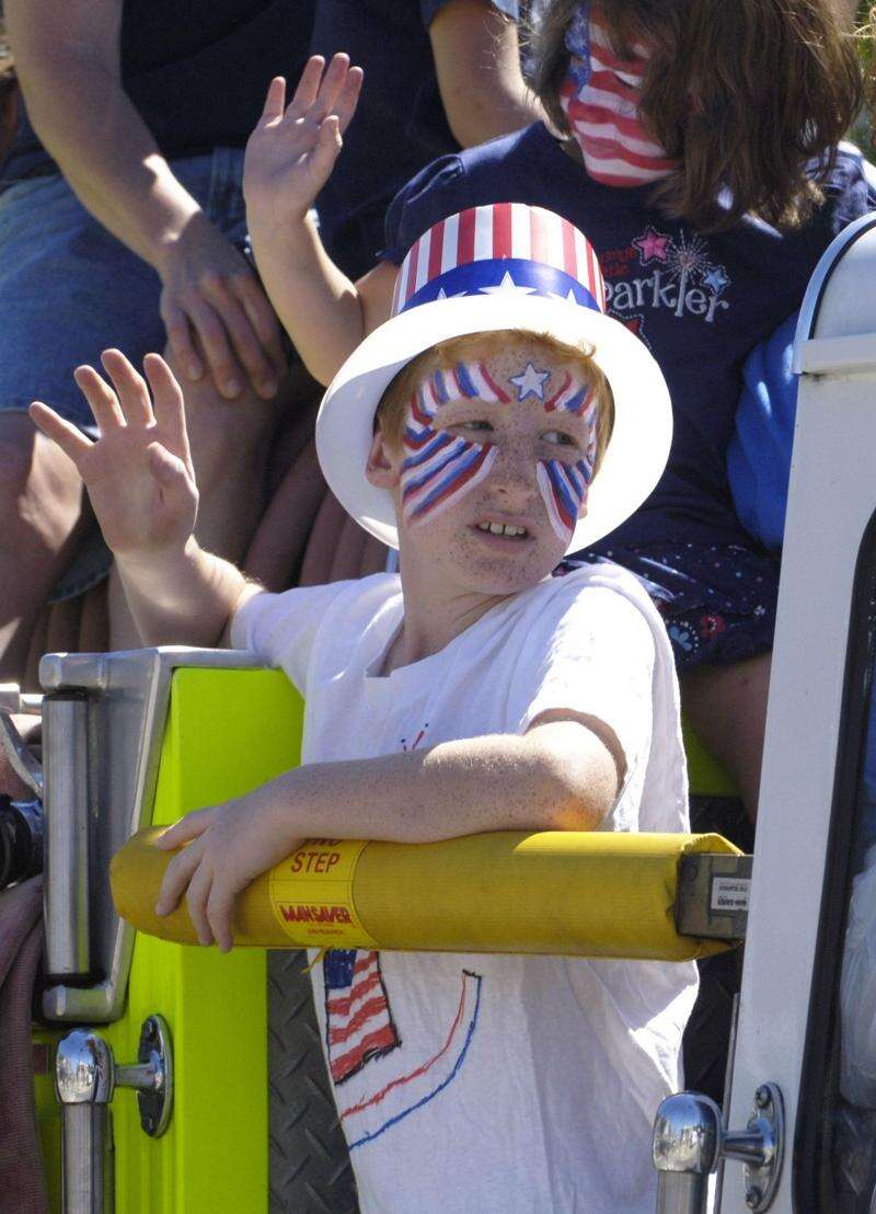 Jack Meyers, 9, of Fox Lake waves to the crowd while riding a fire engine during Saturday's "Celebrate Fox Lake" parade.