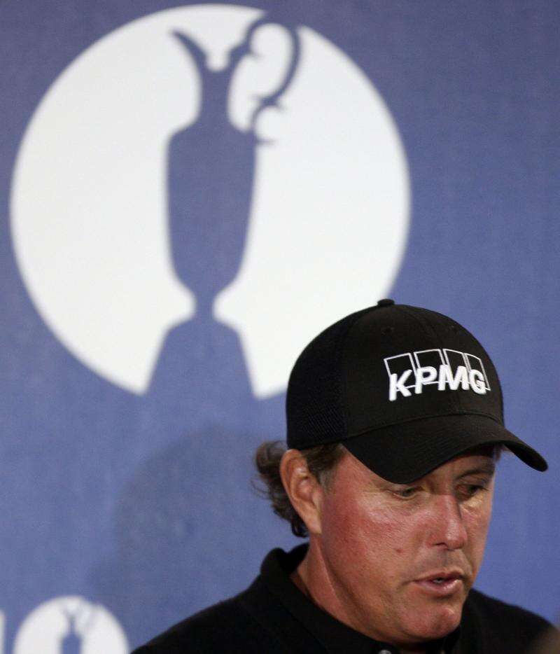 Phil Mickelson of the U.S. talks during a press conference prior to the British Open golf tournament at St. Andrews, Scotland, Tuesday Associated Press