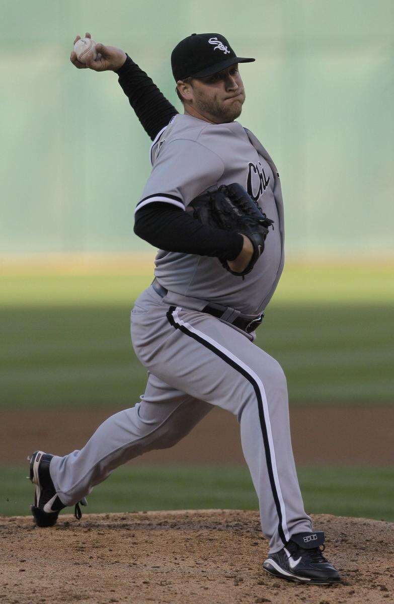 Mark Buehrle tossed a complete-game 4-hitter and picked up his first career victory at Oakland on Friday. Associated Press