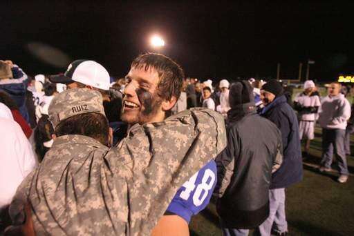 Lake Zurich's Mike Schnur is all smiles after winning 14-7 over Prospect in second round of Class 7A play-off football in Mount Prospect on Saturday, November 6th.