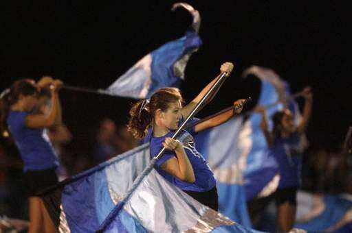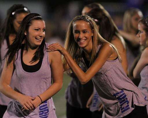 Lake Zurich's Pom Pon squad holds a giant flag prior to the IHSA Class 7A football semi final game Saturday night at Lake Zurich High School.