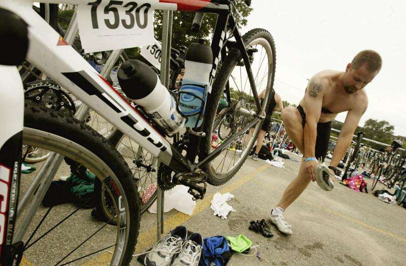It took more than 55 minutes to get all 1,950 racers into the water at Centennial Beach. After swimming 400 meters, the competitors biked 22 kilometers or 13.3 miles and finally ran 5 kilometers or 3.1 miles in what is considered a short triathlon.