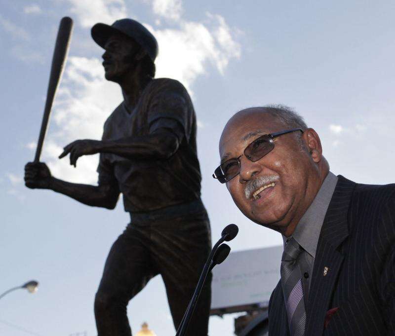 Cubs Hall of Famer Billy Williams addresses the crowd Tuesday at the dedication of his statue outside Wrigley Field. Associated Press