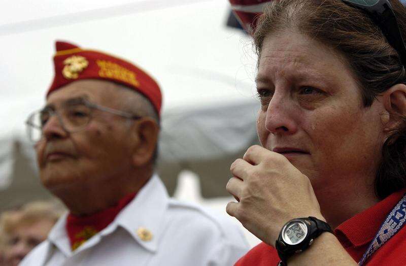 Tears stream down the face of Dianna Mann of Highwood as the 7th annual Family Freedom Festival memorial in Barrington opening ceremony begins. Mark Welsh | Staff Photographer