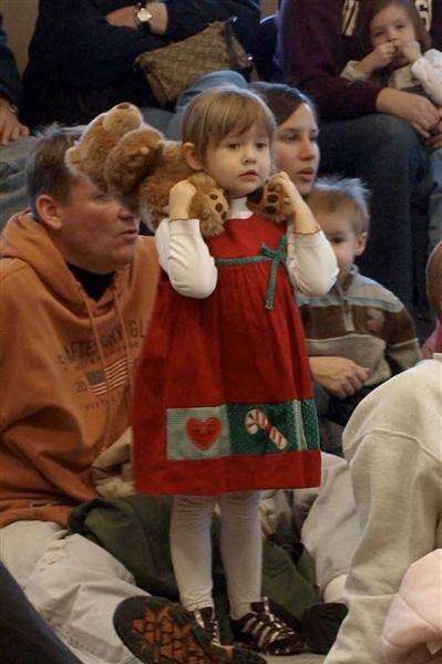 Kids bring their favorite stuffed toy to the library for this annual event's 30th year. Storyteller Chris Sascione performs stories with the help of the audience, and folk singer Mark Dvorak plays familiar songs the children can sing along to. After the entertainment, a human-sized teddy bear leads the way to village hall where the fire department drops off Santa and Mrs. Claus. The group follows Santa back to the library for refreshments and visits with Santa.