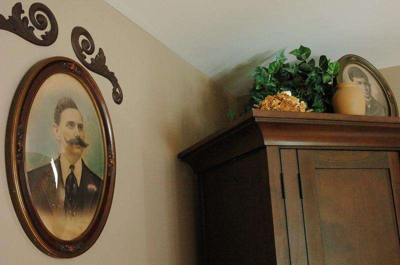Great family photos can serve as accent pieces. Older photos in antique frames still work well with modern decor.