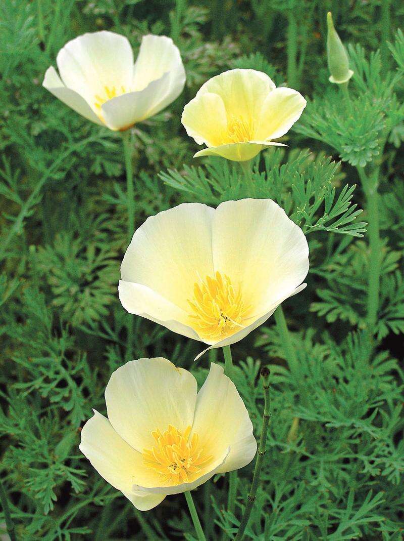 If your poppies inhabit a big tent, you can bring in the related annual named California poppy. California poppies are cultivated much the same way as true poppies and bloom around the same time. The botanical name contains four vowels but seems to need a great many more: Eschscholtzia. California poppies are lower-growing and daintier than poppies and hover above feathery foliage. The colors are impossibly rich. The classic species is an intense orange, but Shepherd also offers Buttercream, which would do a Jersey cow proud. It grows well here; a friend raves over it. I am drawn to Dusky Rose, which opens a magenta pink and then matures to something lighter but very elegant. If only we could age as well before going to seed.