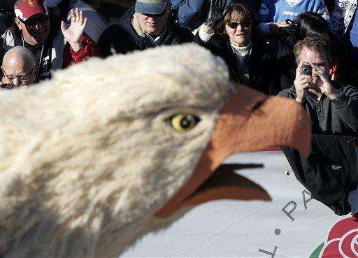 A spectator, right, takes a a photo as the Anheuser-Busch float "Proud to Serve Those Who Serve" moves along Colorado Boulevard during the Rose Parade in Pasadena, Calif., Saturday. Associated Press