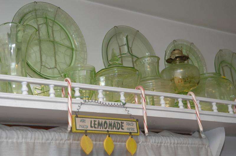 In the kitchen are Depression glass acquired from his grandmother as well as Blue Willow china, aluminum glasses and Fiesta Ware. There is also a working GE Monitor refrigerator and a 1947 Kelvinator porcelain drinking fountain.