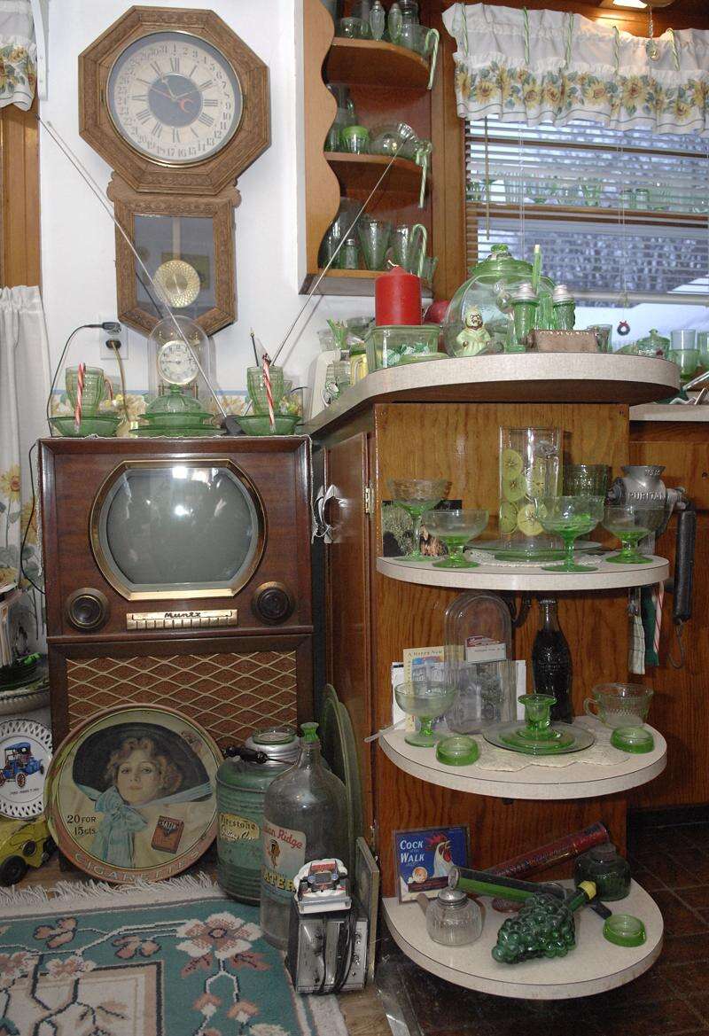 Decorated with old clocks, Depression glass, old phonographs, and more recently, the contents of a 1970's-era record store, the two floors and basement of his west side Elgin home are indeed one of the most unusual collections of its type in the area.