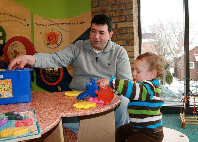 Emily Byrne, 3, of Hoffman Estates and her 6-year-old triplet sisters headed to the magnetic board in the “I Can Read!” room.
