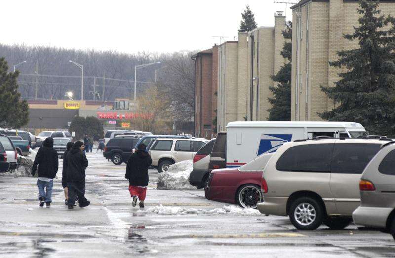 Residents walk through an apartment complexÂ’s parking lot Thursday, one day after shots were fired here. Mark Black/mblack@dailyherald.com
