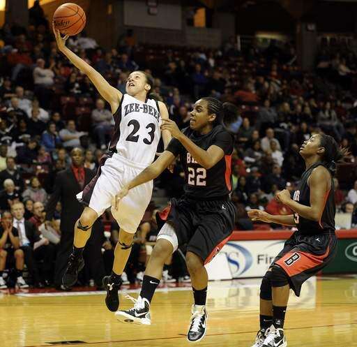 Morgan Tuck struggled in Friday's game, making just 3 of 13 field goals for 10 points. She more than made up for it Saturday.