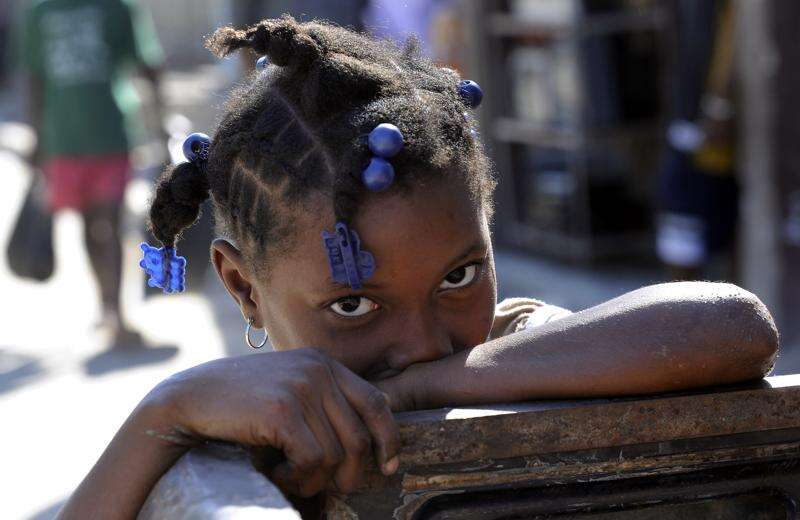 A young Haitian girl waits for her mother as she is treated at a local clinic in Jacmel, Haiti.