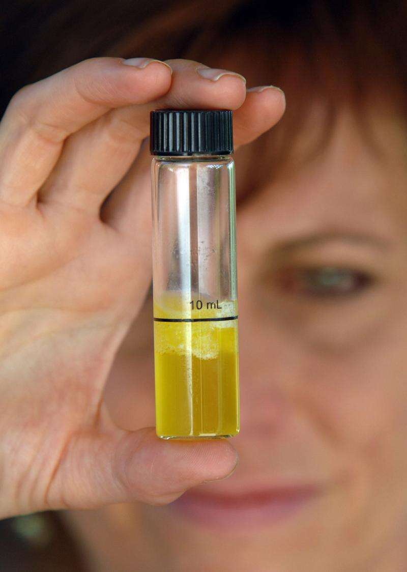 Lisa ballantine holds a test sample from a well in which local Haitians get their water from, it was loaded with e-coli bacteria dysentery.