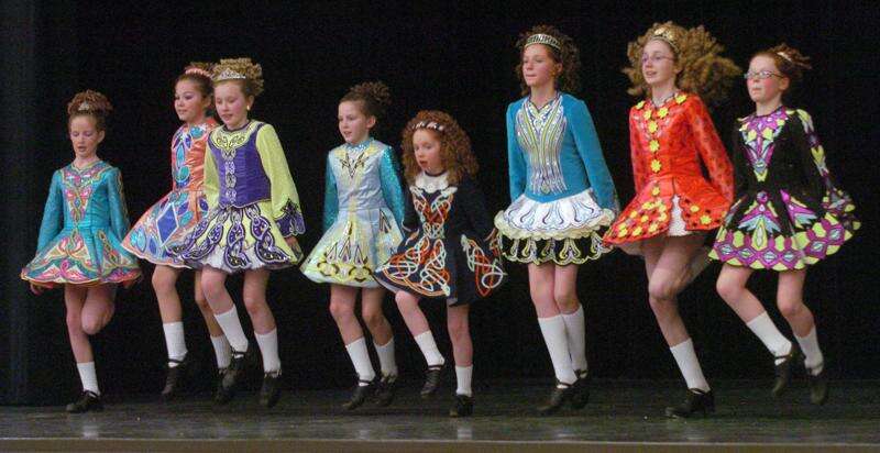 Dancers from Mullane-Healy-Godley School of Irish Dance perform during an assembly at St. James School Thursday in Arlington Heights. JOE LEWNARD/jlewnard@dailyherald.com