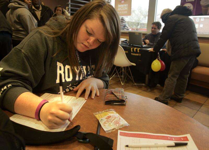 Cortney Gatewood, 16, was looking for part-time work at a Cincinnati McDonald's on Tuesday. She said she wanted to save for college and didn't hesitate to consider the fast-food chain.