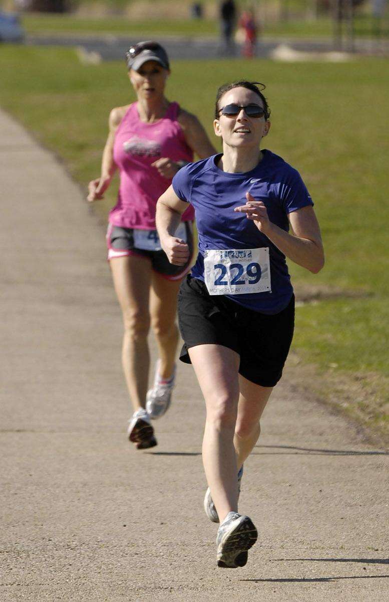 Third place winner Caroline Linden runs the Run Like a Mother 5K run Sunday at Neuqua Valley High School in Naperville. Linden missed placing second by only two seconds, finishing with a time of 22:59. The Mothers Day run encourages women to make their health a priority.