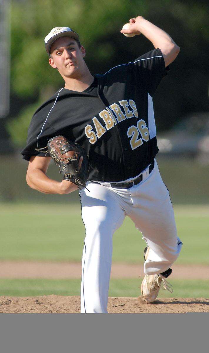 Streamwood’s Josh Harris pitches in the seventh inning of the 4A Sectional semifinal game in DeKalb on Wednesday, June 1. He was the third pitcher of the game for the Sabres. Laura Stoecker/lstoecker@dailyherald.com