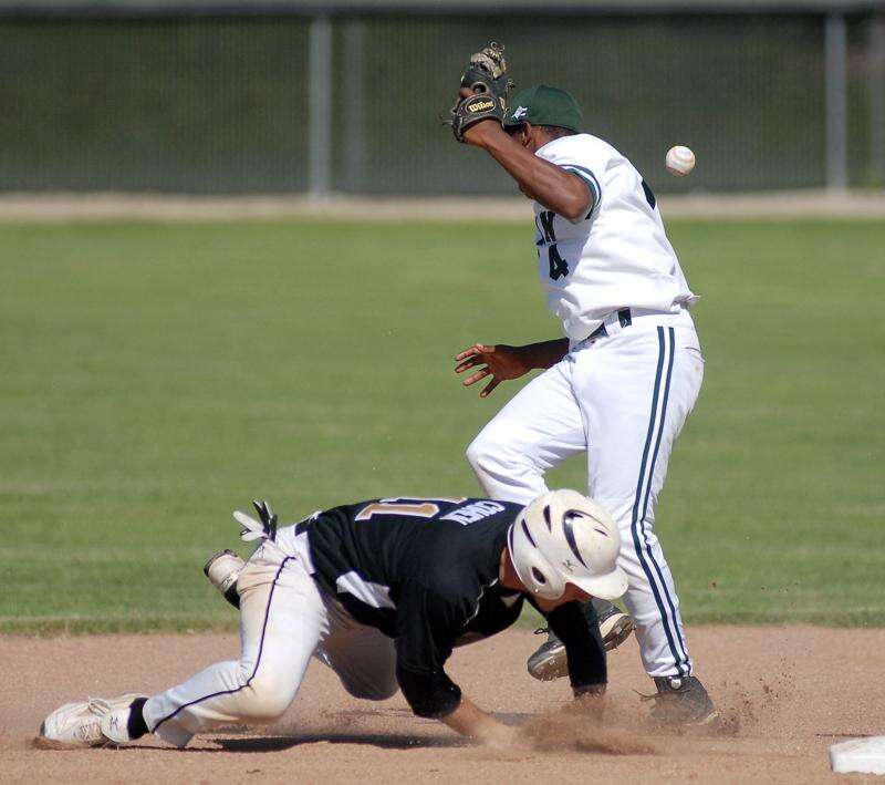 The ball slips from the mitt of Rockford Boylan’s Tony Pirrello as Streamwood’s Tim Cohen slides safely into second in the first inning of the Class 4A sectional semifinal game in DeKalb on Wednesday, June 1. Laura Stoecker/lstoecker@dailyherald.com