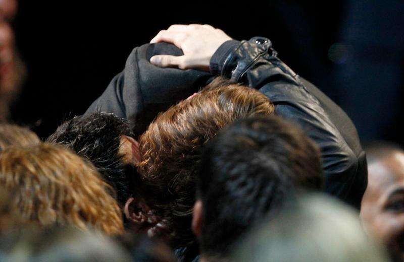 Team Jacob also earned some love from “Saturday Night Live” star Jason Sudeikis, the show's host, who kicked off the silly ceremony at the Gibson Amphitheater by starring in his own version of “The Hangover” in which he went in search of a lost Lautner. The other “Twilight” winners were Stewart for best female performance and “Eclipse” for best movie.