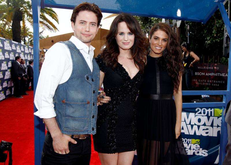 "Twilight' stars Jackson Rathbone, left, Elizabeth Reaser, center, and Nikki Reed arrive at the MTV Movie Awards on Sunday, June 5, 2011, in Los Angeles.