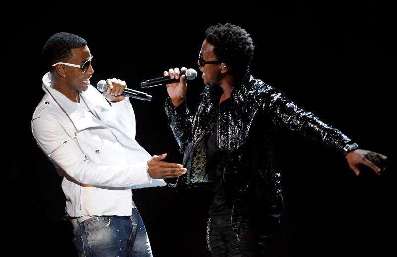 Trey Songz, left, and Lupe Fiasco perform at the MTV Movie Awards on Sunday, June 5, 2011, in Los Angeles.