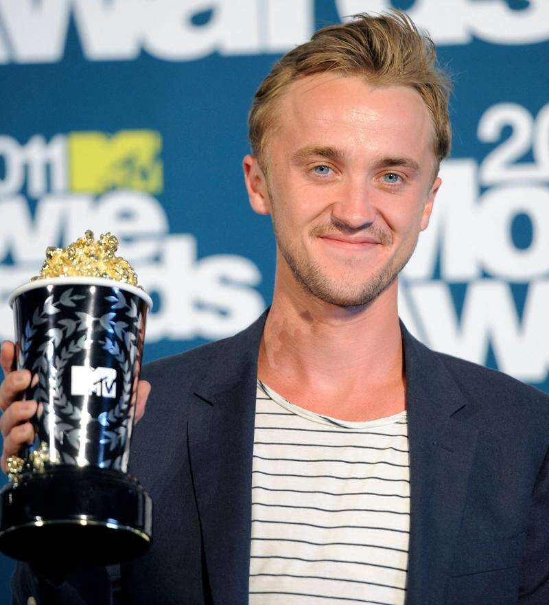 Tom Felton is seen backstage with the award for best villain for ?Harry Potter and the Deathly Hallows: Part 1.?