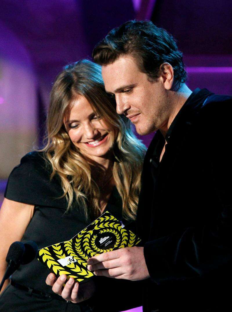 "Bad Teacher" co-stars Cameron Diaz, left, and Jason Segel present the best line from a movie award at the MTV Movie Awards on Sunday, June 5, 2011, in Los Angeles.