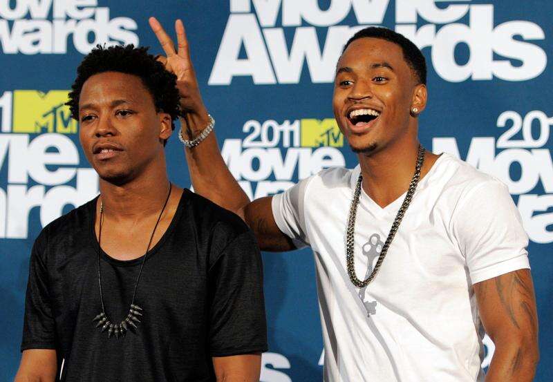 Lupe Fiasco and Trey Songz fool around backstage after their peformance during MTV Movie Awards on Sunday, June 5, 2011, in Los Angeles.