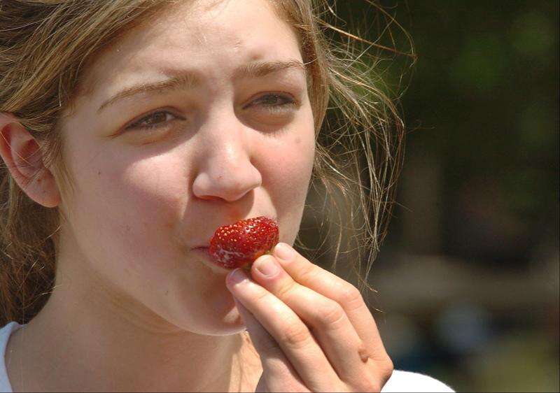 Cara Farella of Long Grove bites into a juicy Michigan strawberry at a previous Strawberry Festival. Daily Herald file photo