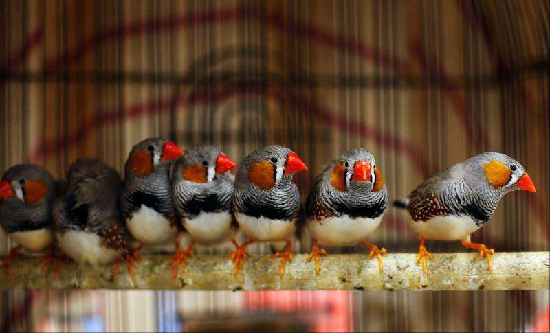 Zebra finches gather on a branch in their cage at the Illini Bird Fanciers Club bird fair and sale in May at the Prairie Capital Convention Center in Springfield. Jason Johnson/State Journal-Register