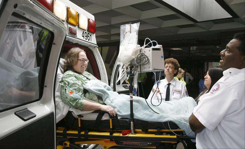 The Bensenville resident was the 100th patient to be transferred, part of an elaborate choreography involving 20 ambulances and double staffing.