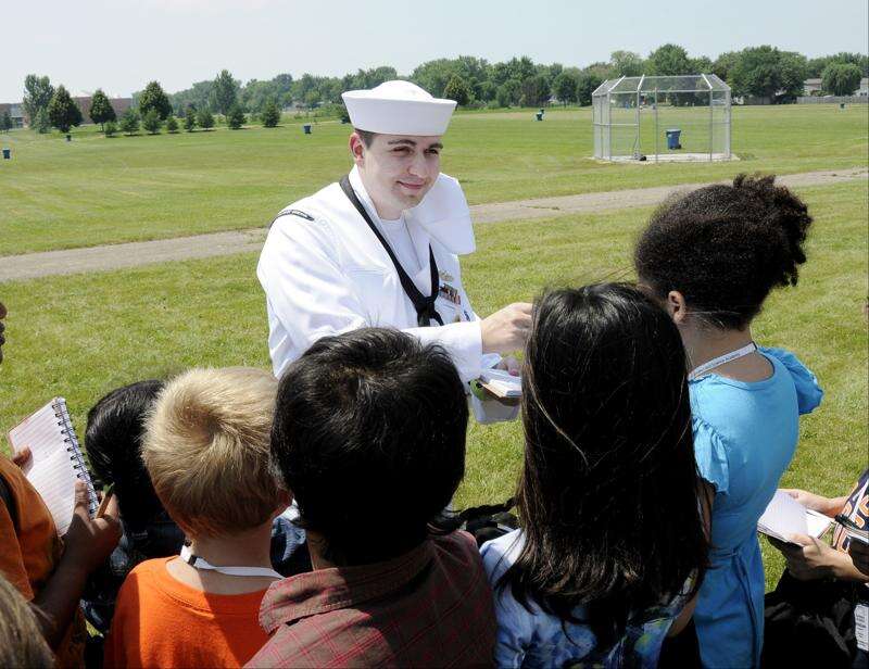 Summer camp students at the Illinois Math and Science Academy in Aurora provided celebrity treatment for sailors Thursday as Navy personnel discussed the role of science in their mission of being “a global force for good.”