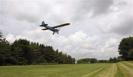 Myrtle Rose, 75, takes off for a short flight in her 1941 Piper J-3 Cub from the airstrip at her home, Friday in South Barrington. Associated Press