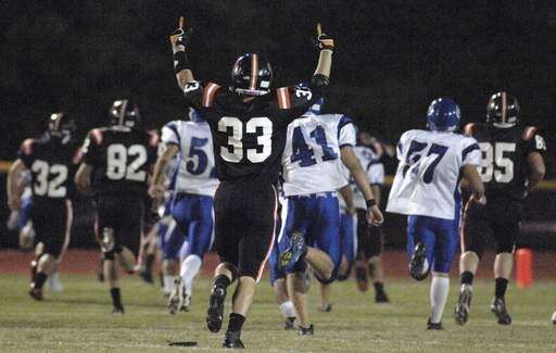 Week 3- St. Charles East's John Kelley signals a Saints touchdown within the first few seconds of the game.