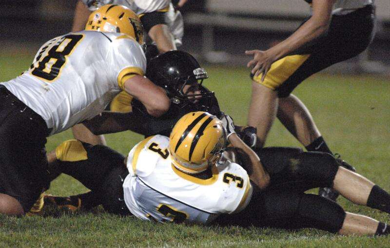 Week 4- Jacobs Antonio Dunner is smacked down by McHenrys defense in the first quarter.