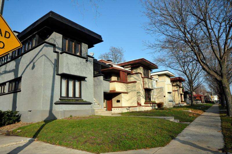 A row of six houses in Milwaukee was designed by Frank Lloyd Wright in the early 20th century. They are American System-Built Homes, which Wright designed as part of his lifelong pursuit of providing affordable housing for low-income residents. Associated Press/Frank Lloyd Wright Wisconsin, Mik